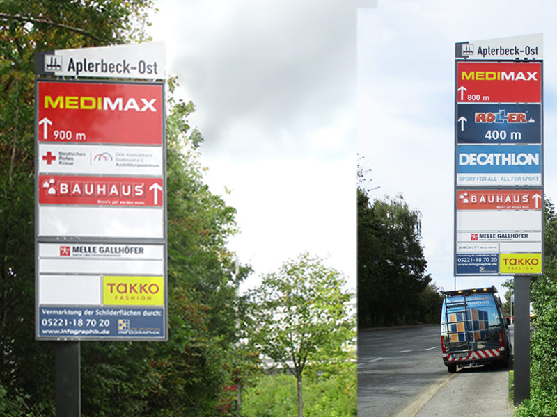 Seit über 55 Jahren ist Infographik auf dem Markt der Lichtwerbung und Wegeleitsysteme tätig. Die Zufriedenheit und die langjährige Treue unserer Kunden beweist unsere Leistungsfähigkeit. Von der Planung, Entwurf, Vermarktung, Genehmigungsverfahren, Realisierung, Aufbau, Montage bis hin zur Reparatur, Wartung und Pflege bieten wir Komplettlösungen an.