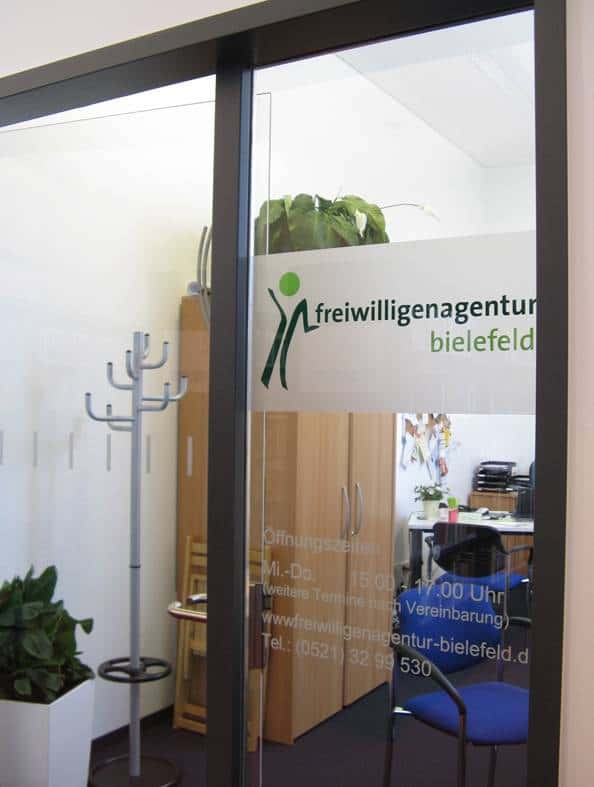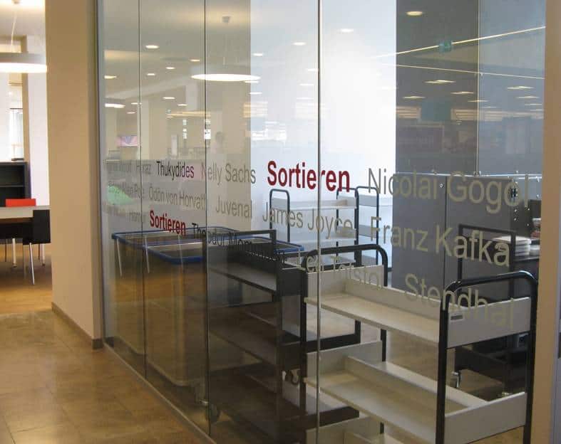 Ausstattung der Bielefelder Stadtbibliothek und Stadtarchiv mit Innen- und Außenwerbung.