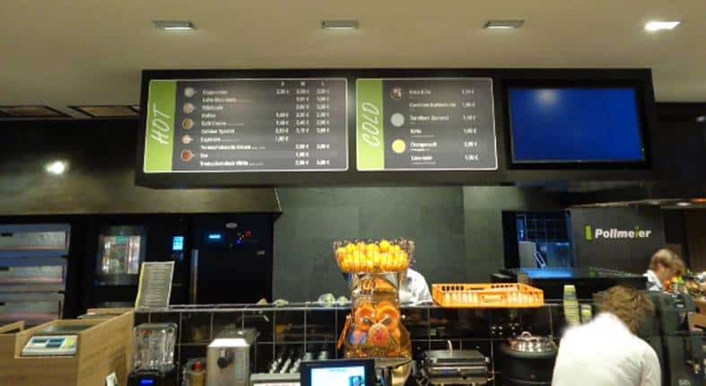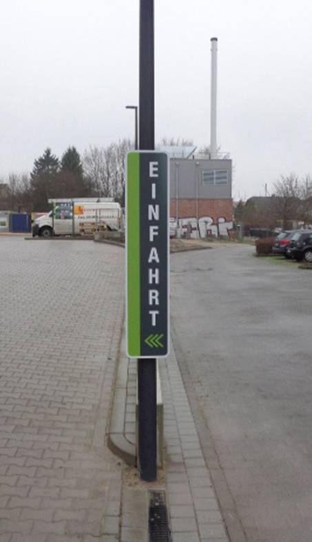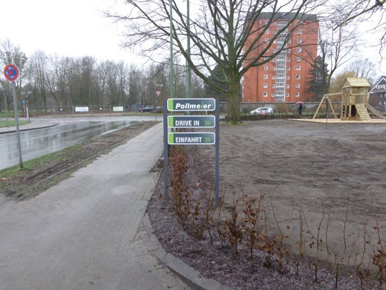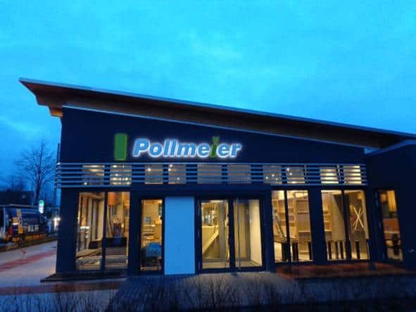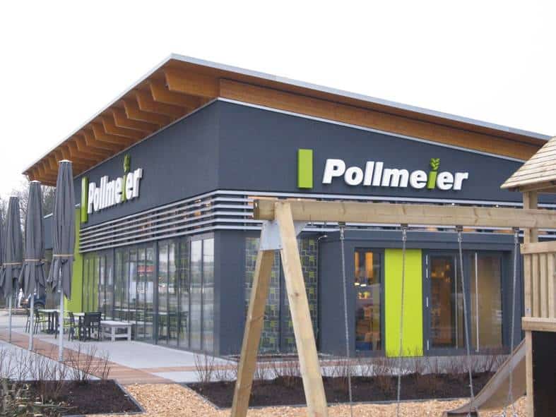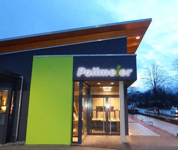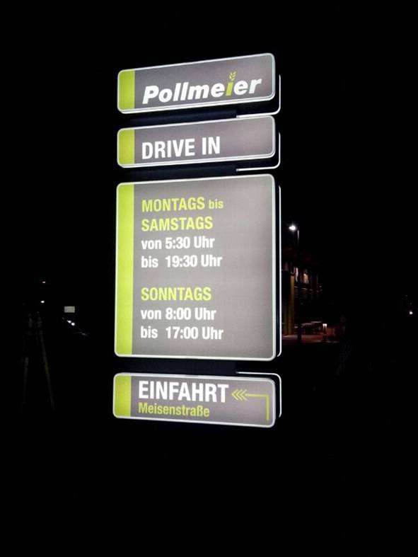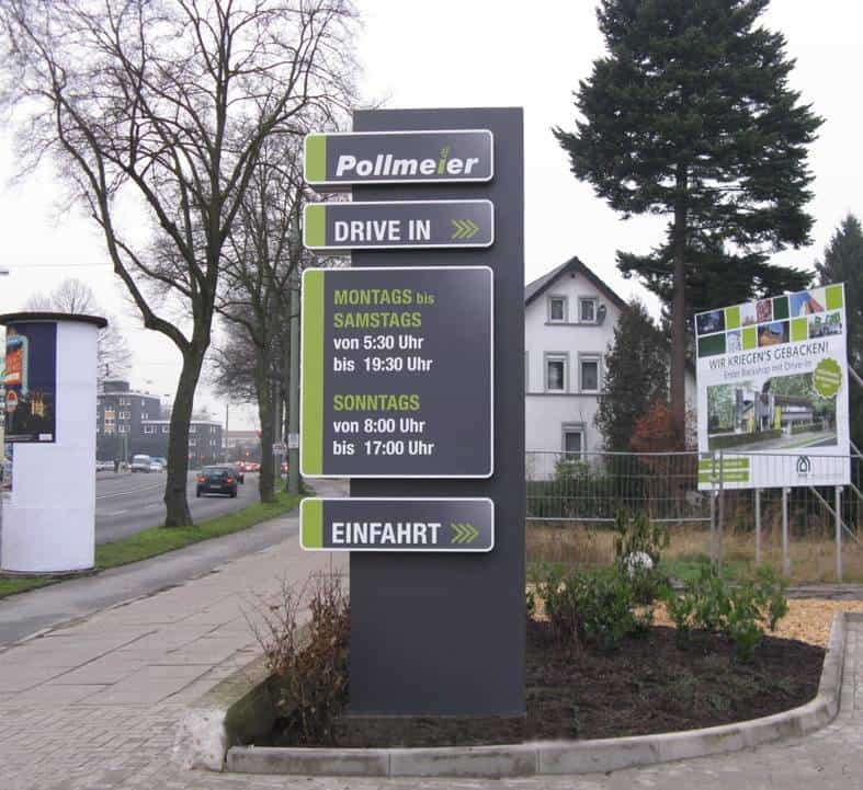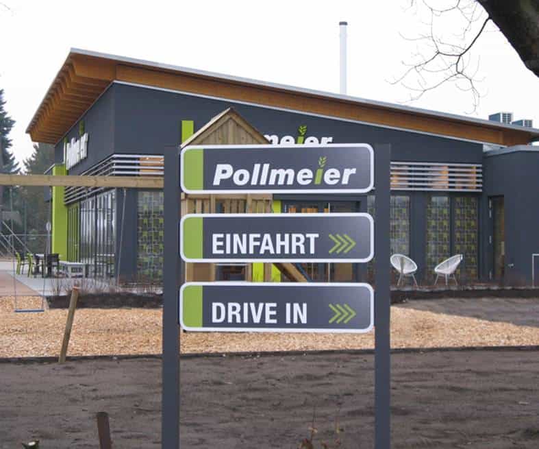 Produktion und Montage der Innen- und Außenbeschilderung der neuen Pollmeier Filiale in Bielefeld Oldentrup.