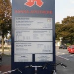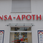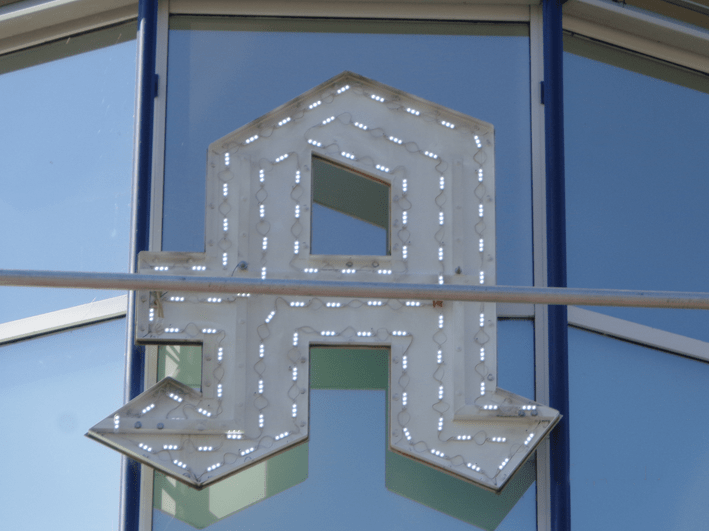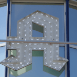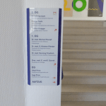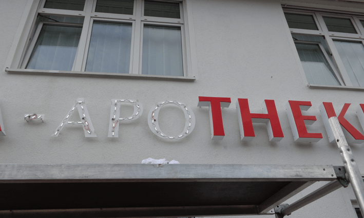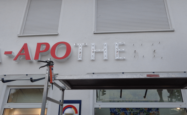 Aussenbereich: Einzelbuchstaben mit LED-Beleuchtung. Innenbeschilderung.