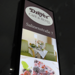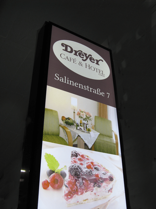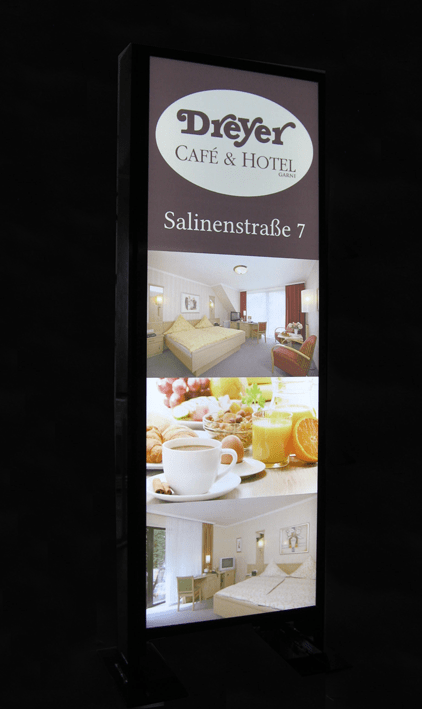 Transparent mit einer Leuchtschiene + Pylon mit LED-Beleuchtung