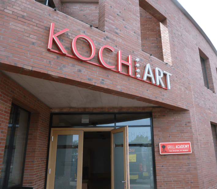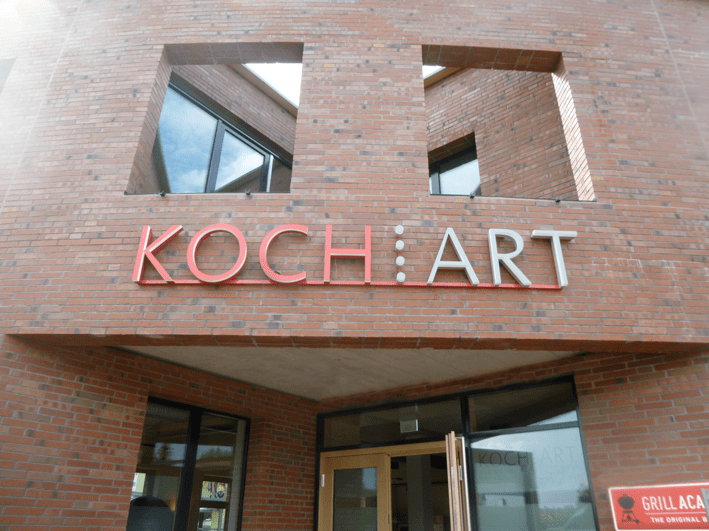 Selbstleuchtende Einzelbuchstaben in flacher Bauweise im Profil 8, montiert auf einer leicht gewölbten Haltekonstruktion vor der Klinkerfassade. Die Ausleuchtung erfolgt auch hier wieder durch unsere bewährten hochwertigen LED mit einem sehr geringen Stromverbrauch. Wartungsfreundlich wurde der Konverter außerhalb der Leuchtschrift gut erreichbar installiert, sodass auch hier die eventuell anfallenden Folgekosten immer gering gehalten werden.