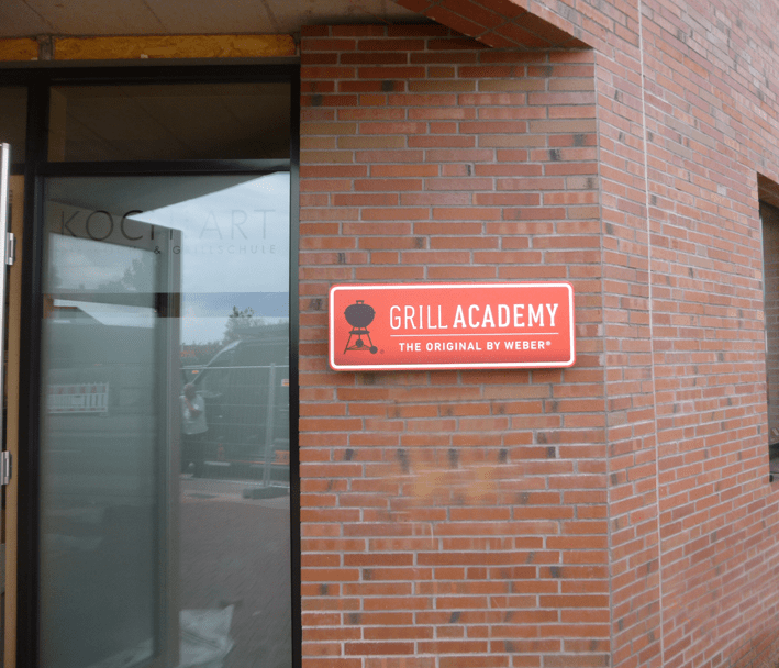 Des Weiteren ein Formtransparent für die „Grill Academy“ mit flachem Metalltunterteil und tiefem Acrylglasoberteil. Insgesamt aber auch nur 80 mm tief. Beschriftet mit transluzenter Hochleistungsfolie von 3M.