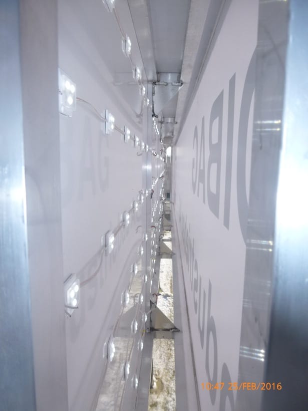 Ausleuchtung mittels hochwertiger LED. Die Montage erfolgte im zusammengebauten Zustand mittels Kran. Die gesamte De- und Montage der zwei Werbeanlagen wurde an einem Tag komplett erledigt.