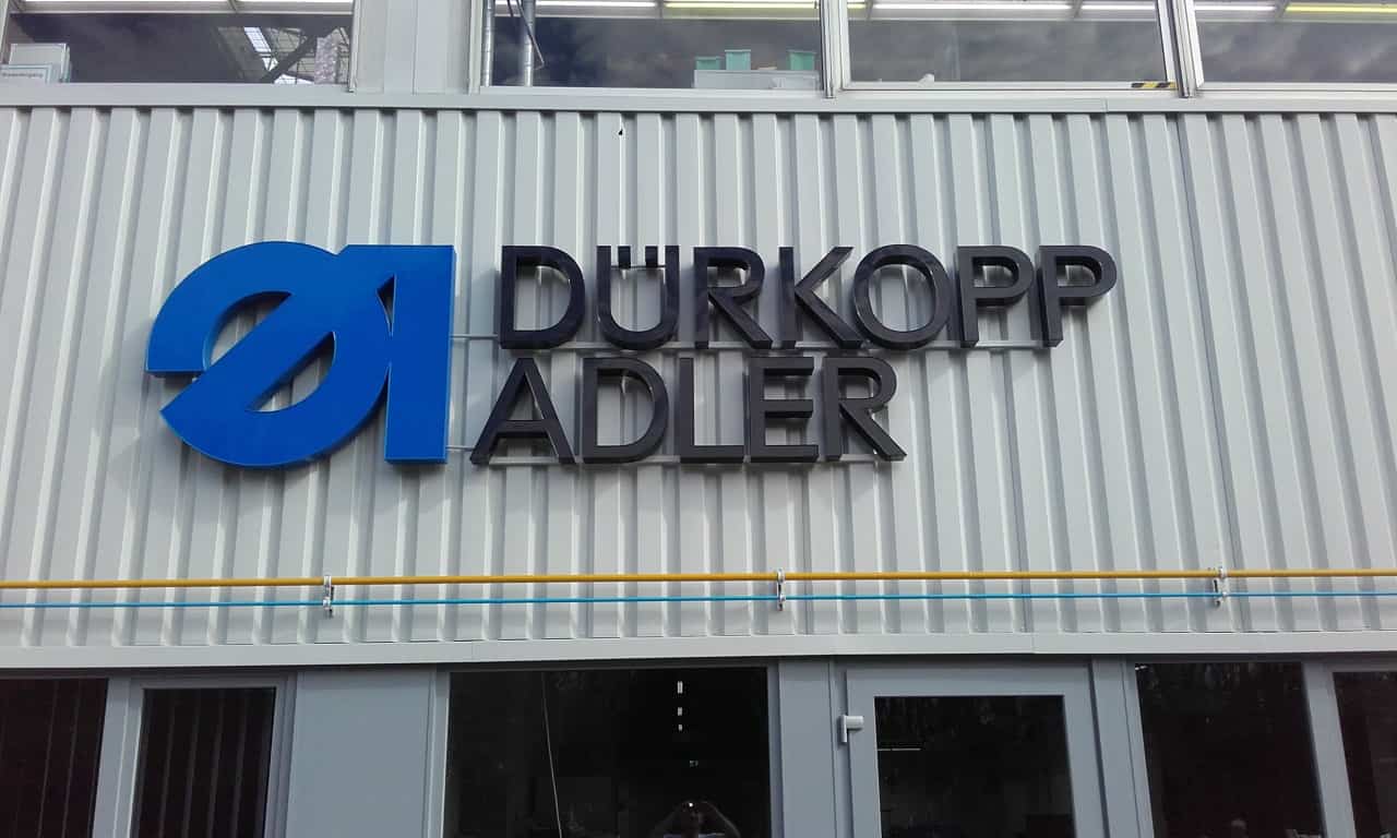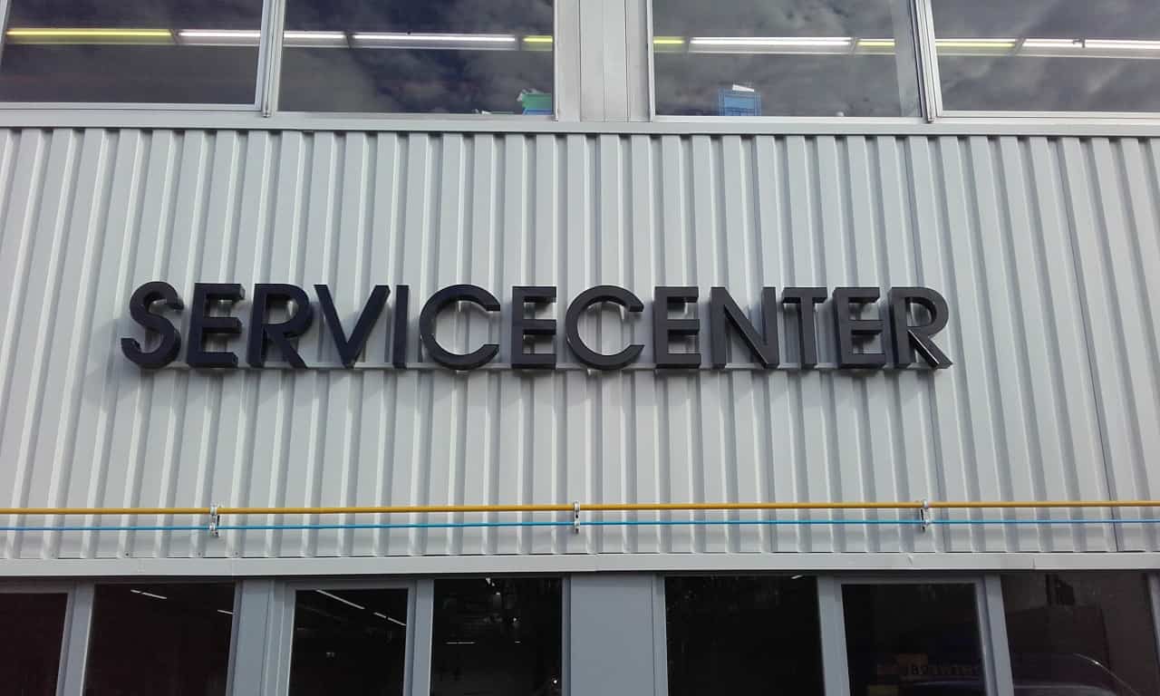 Einzelbuchstaben im Profil 5, Vollreliefbuchstaben mit blauen und black&white Spiegeln. Der Effekt Tageswirkung schwarz – Nachtwirkung weiß. Ausleuchtung durch hochwertige, sparsame LED. Diese technische Ausführung entspricht optimal den Ansprüchen von Industrieunternehmen, weil hier die Preis-/Leistung passt.