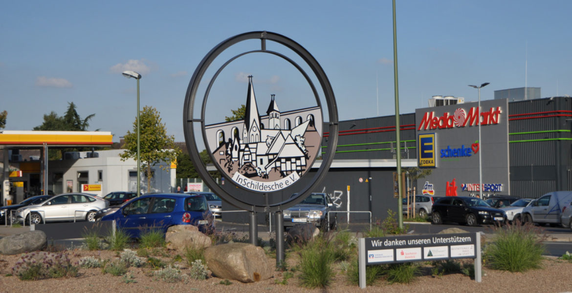 Schildesche hat eine neue, beeindruckende Skulptur. In zentraler Lage, im Verkehrskreisel an der Engerschen Straße neben dem Media Markt, erinnert seit August 2016 eine kunstvolle Silhouette der Interessen- und Werbegemeinschaft e.V. an die Wahrzeichen des Ortes, mit denen sich die Bürger verbunden fühlen:
