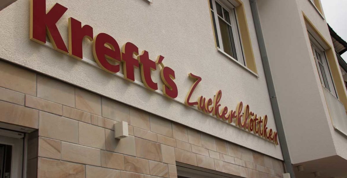 Leuchtbuchstaben in Flachbauweise 30 mm aus Acryl an Hausfassade. Im Innenbereich Acrylbuchstaben, die von oben angestrahlt werden. Weiterlesen