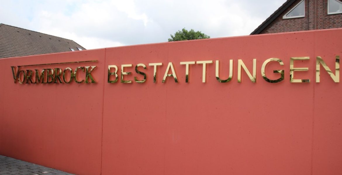 1. Schattenschrift im Profil Nr. 3 aus vergoldetem V2A mit Hochglanz-Polierung. Die Verkabelung verläuft hinter der Mauer. Die Ausleuchtung besteht aus sparsamer und nachhaltiger LED-Beleuchtung… Weiterlesen