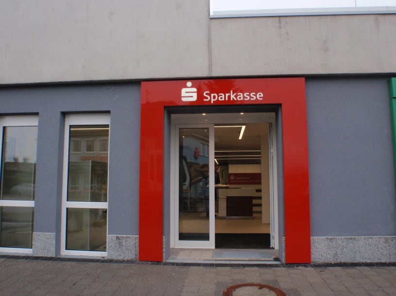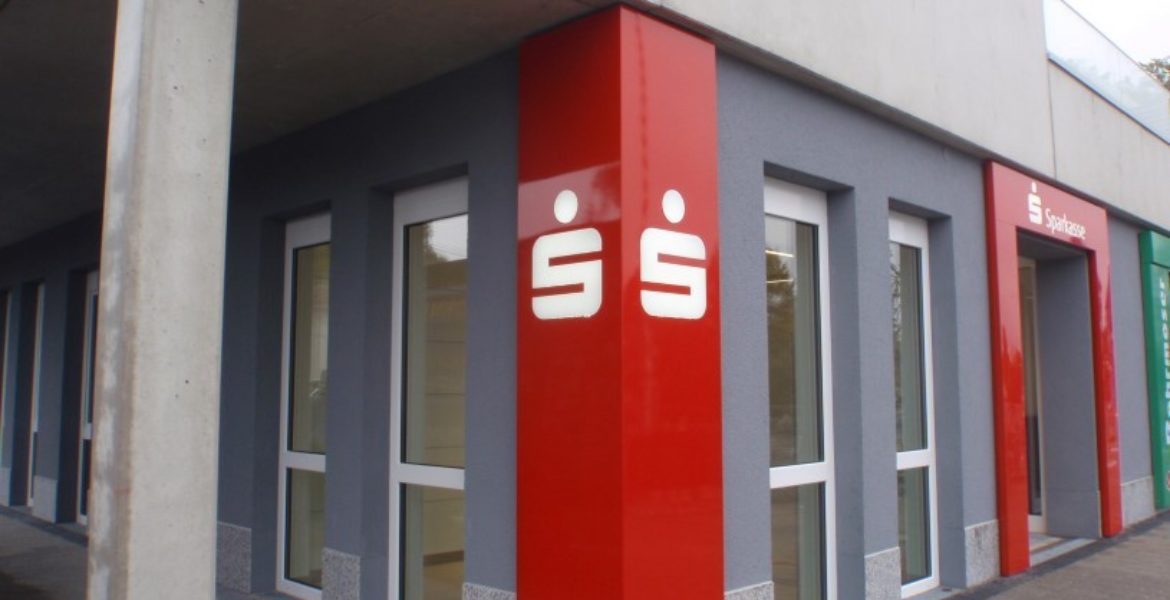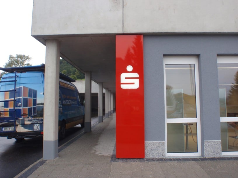 Im bayrischen Weilheim haben wir die Außenwerbeanlage (Eingangsportal und Verkleidung einer Wandecke) der Sparkasse erneuert.