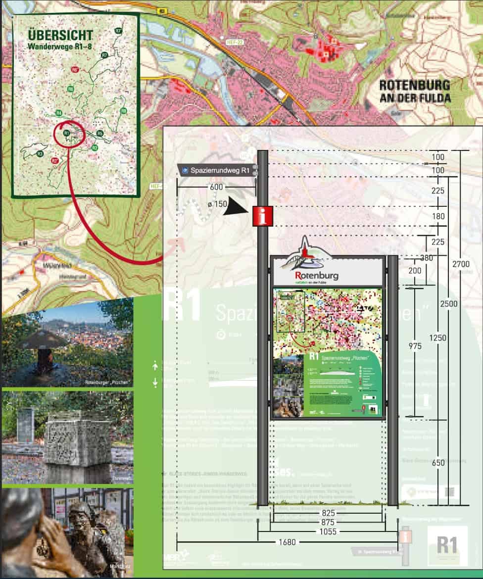 Insgesamt ging es um 14 Infopoints mit Wanderkarten und 12 Einzelwegweiserstandorte mit insgesamt 75 Hinweisschildern.