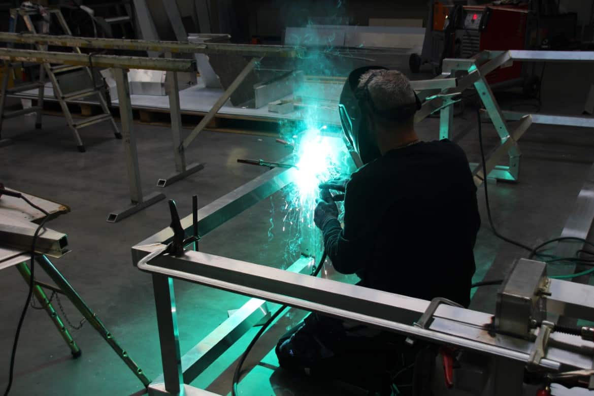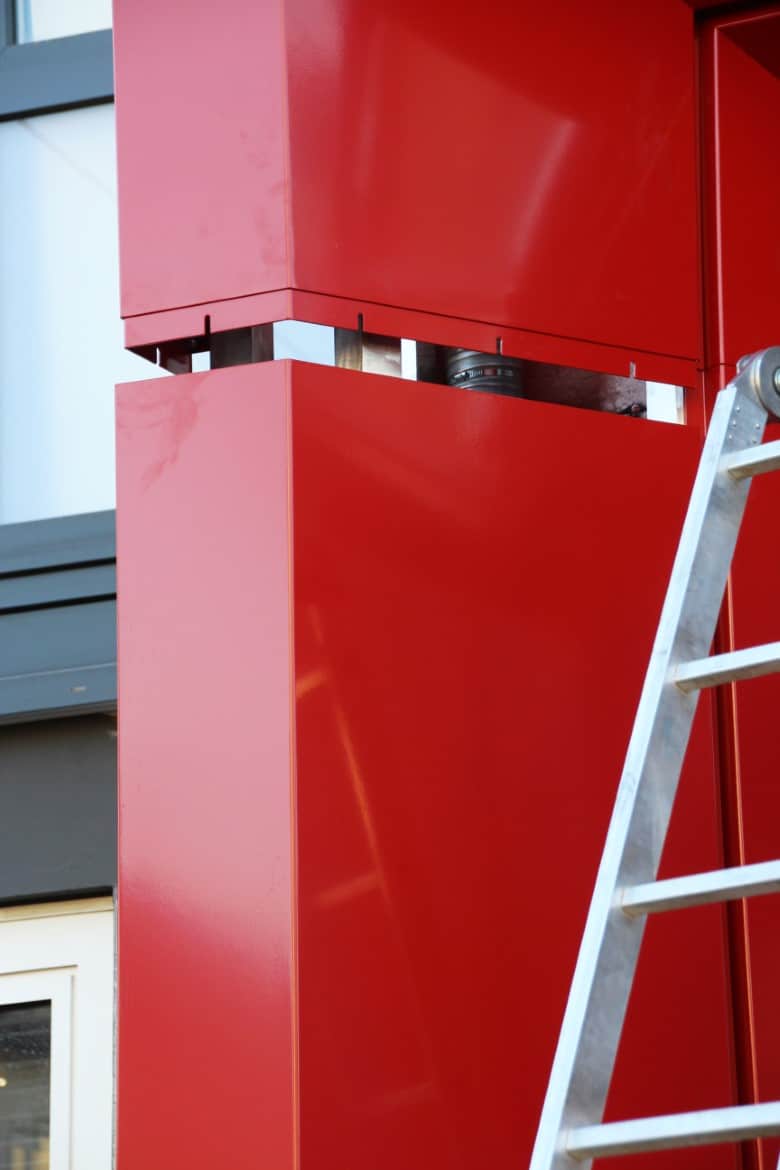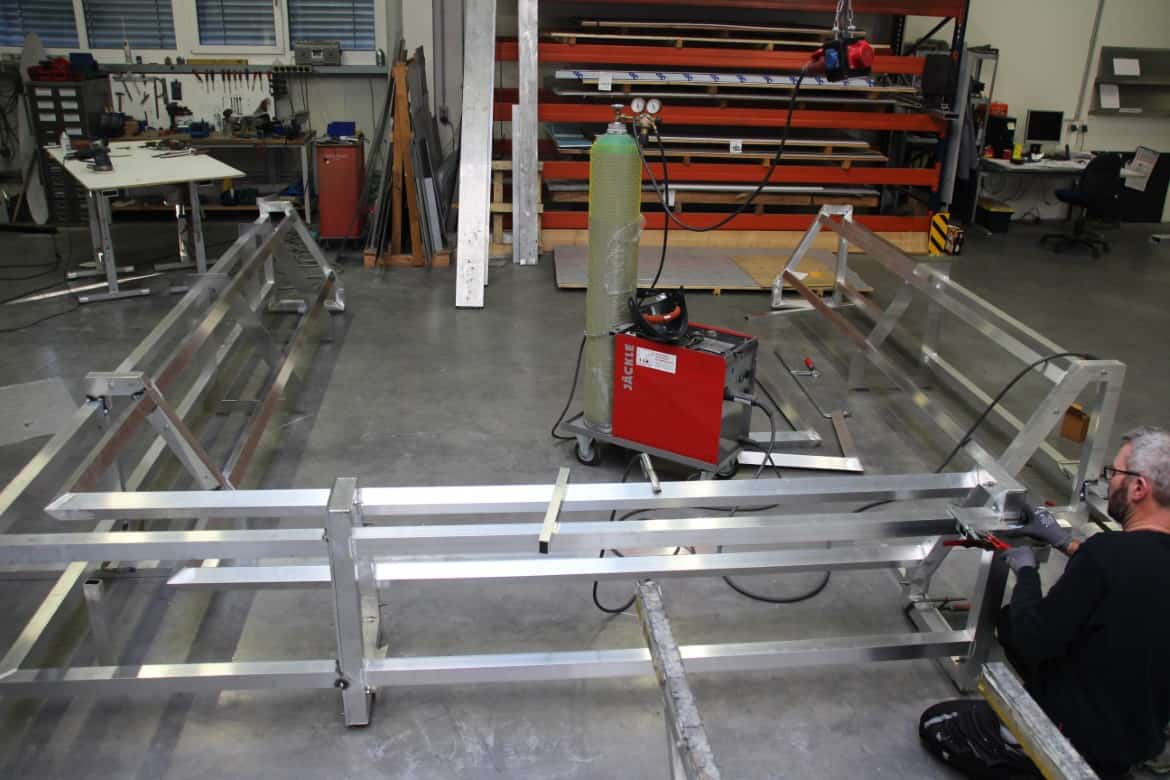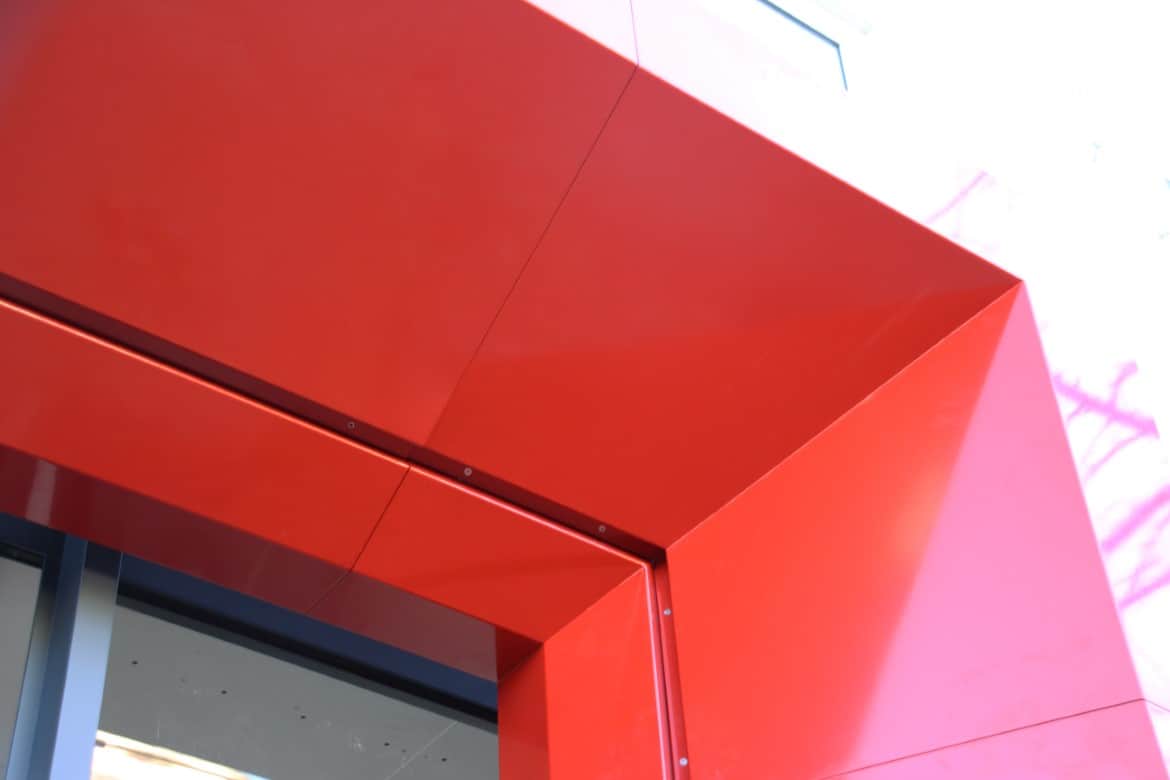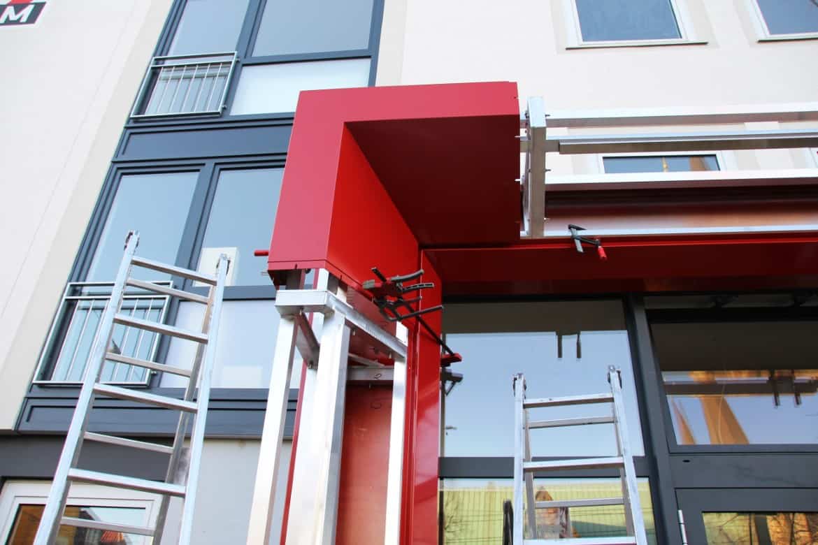 Der Portalrahmen wurde aus Aluminiumprofilen und speziell gekanteten Aluminiumblechen passgenau gearbeitet.