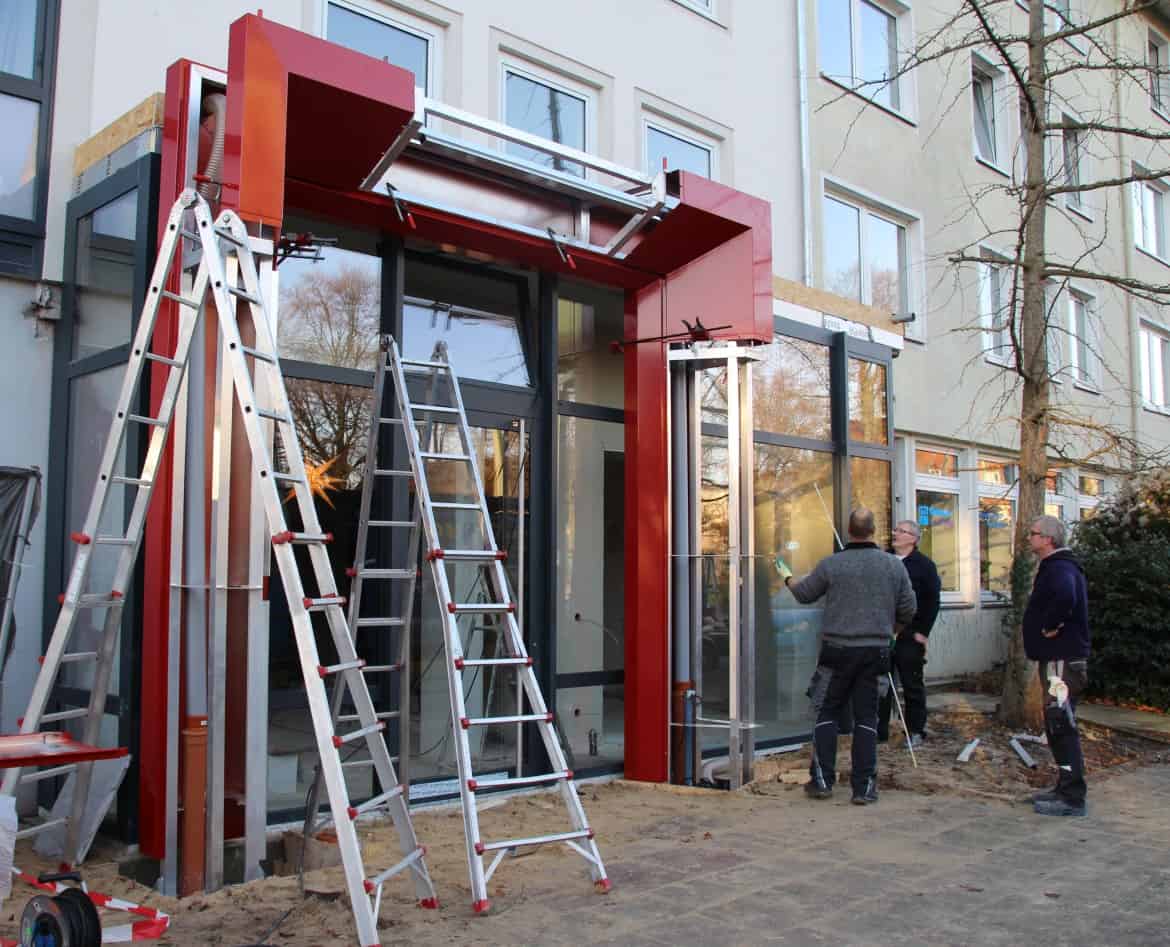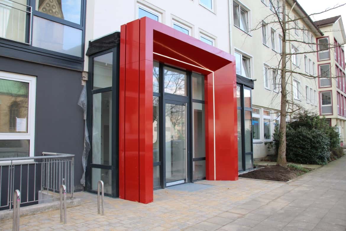 Der Eingangsbereich des „CVJM Bielefeld“ an der Detmolder Straße – bisher eher unscheinbar – wurde Ende 2019 im Rahmen einer größeren Umbauphase neu gestaltet, und ist nun ein echter „Eyecatcher“, der die Fassade im Stil der 70er Jahre enorm aufwertet.