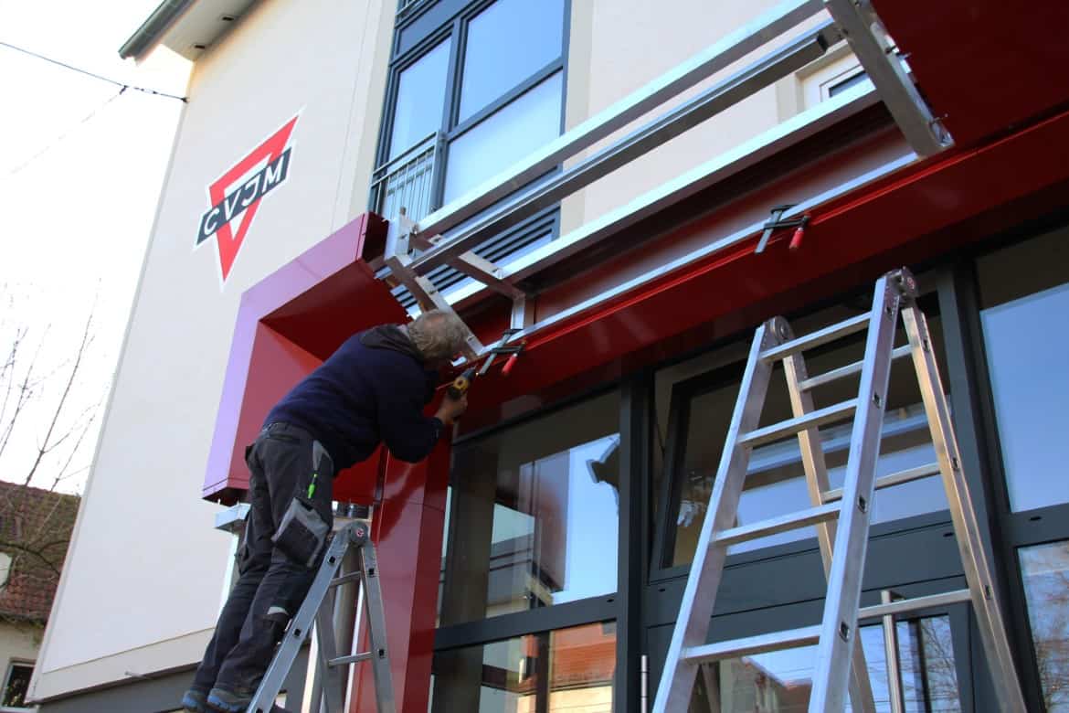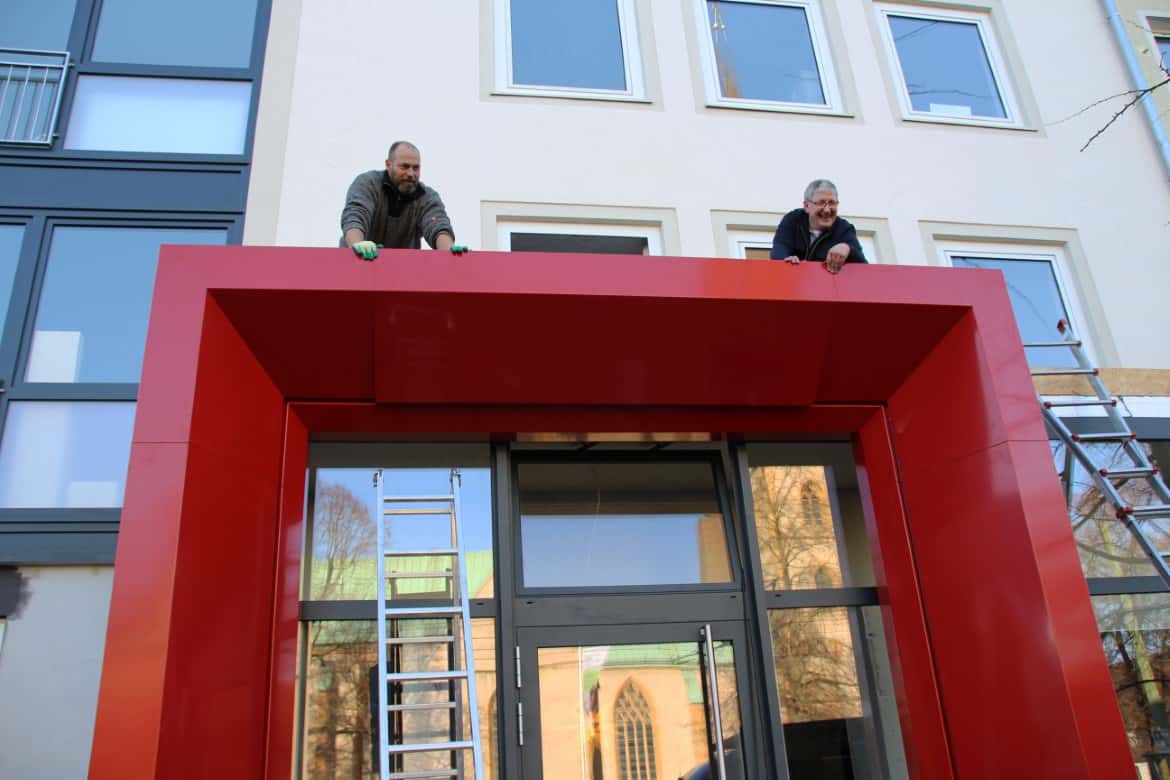 Der Aufwand hat sich gelohnt und das Ergebnis kann sich sehen lassen. Nachträglich wird noch ein CVJM-Leuchtlogo integriert sowie eine Briefkasten-‚ Klingel- und Kamera-Anlage eingebaut.