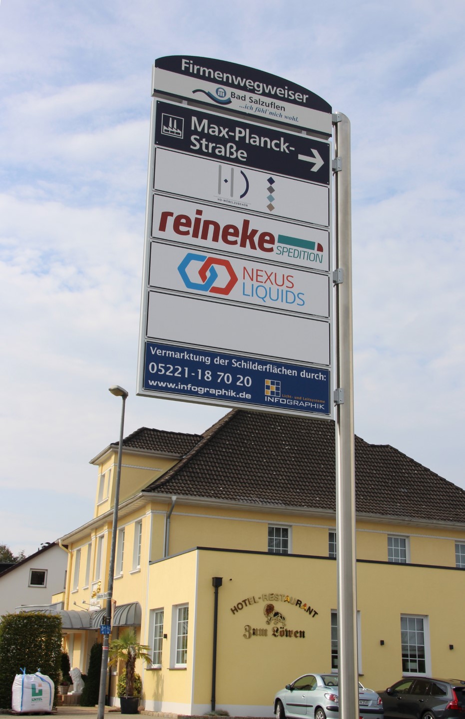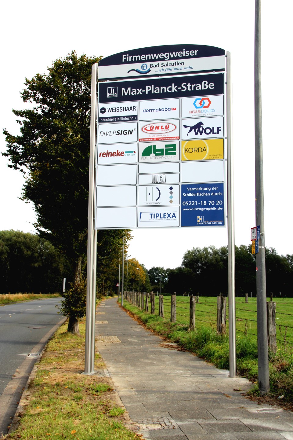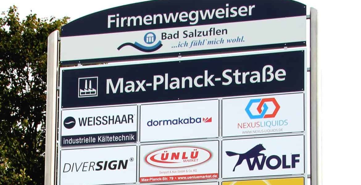 In Kooperation mit der Stadt Bad Salzuflen haben wir im Gewerbegebiet Max-Planck-Straße/ Sylbacher Straße die Firmenwegweiser erneuert und die Standorte der Anlagen optimiert.