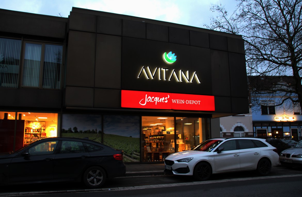 Die Firma Avitana GmbH mit Sitz im ostwestfälischen Herford, Entwickler und Produzent von Plasmafiltern „Made in Germany“ für saubere und gesunde Luft in Küche und Wohnraum, beauftragte uns mit der Erstellung einer Fassadenbeschriftung. Sowohl das Firmen-Logo, als auch der Schriftzug wurden im Profil 8, als Front-Zargenleuchter gefertigt und auf einem Metallpaneel aus Aluminium montiert. Das Logo im Signet erhielt die Farben hellgrün und himmelblau (nach CI), der Spiegel des Schriftzugs „Avitana“ ist in schwarz gehalten. Die Farben des Wandpaneels wurden der mittlerweile 40 Jahre alten Eloxal-Fassade angepasst. Durch eine besondere Pulverbeschichtung ist es uns gelungen hier den Farbabgleich zu schaffen. Selbstverständlich haben wir bei der Ausleuchtung sparsame und nachhaltige LED eingesetzt.