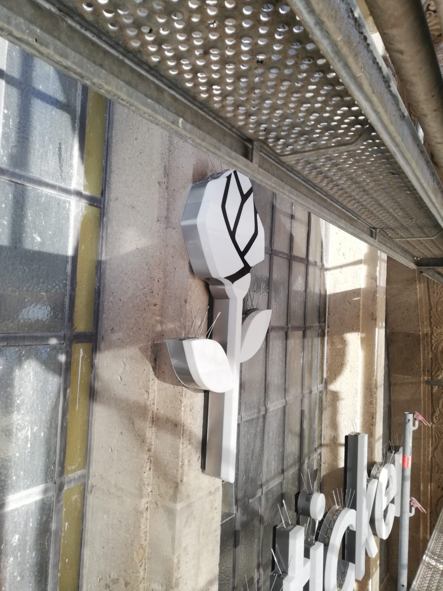 Wir, als qualifiziertes Fachunternehmen, wurden damit beauftragt dieses in die Tat umzusetzen. Der neue 3D-Schriftzug „seidensticker“ als auch die Rose, das markante Markenzeichen der Firma, haben wir als Front-Zargenleuchter im Profil 8 konstruiert. Hierbei handelt es sich um 2-teilige Vollreliefbuchstaben, bei denen die Zarge 70% lichtdicht ablackiert wurde, die restlichen 30% leuchten mit. Unsere energieeffiziente und hochwertige LED-Technik sorgt für einen angenehmen und effektiven Lichteffekt.