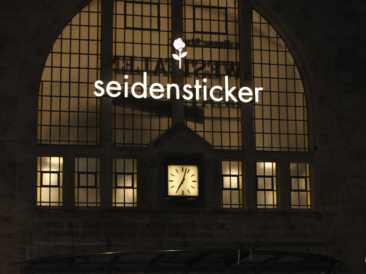 Im Zuge der Umbau- und Renovierungsmaßnahmen am Bielefelder Hauptbahnhof wurde auch die Werbeanlage des bekannten Bielefelder Hemden- und Blusenherstellers Seidensticker erneuert.