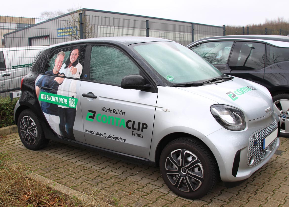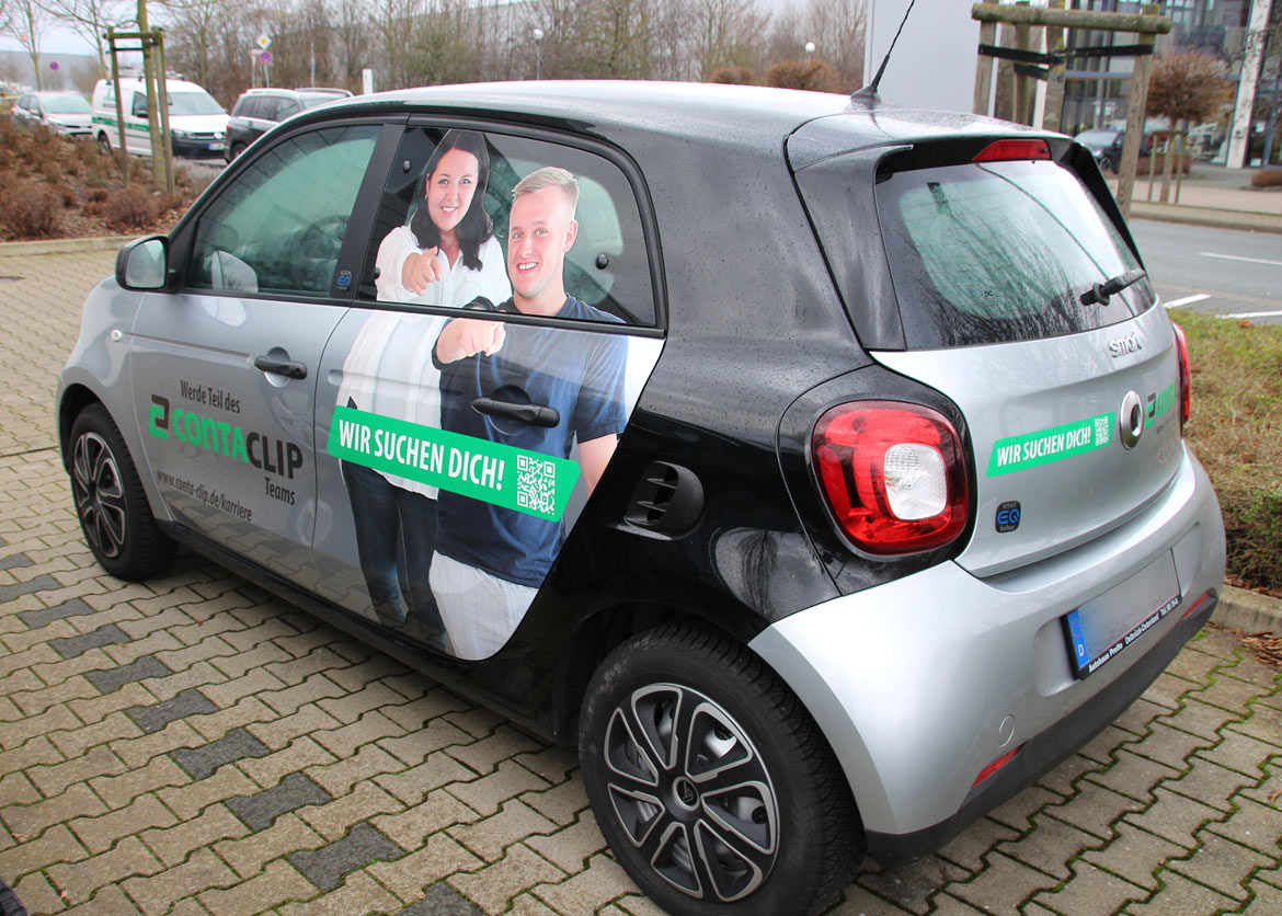 SMART bekam eine vierseitige Folienbeschriftung. Die Gestaltung, Produktion und Beklebung wurden von uns durchgeführt.