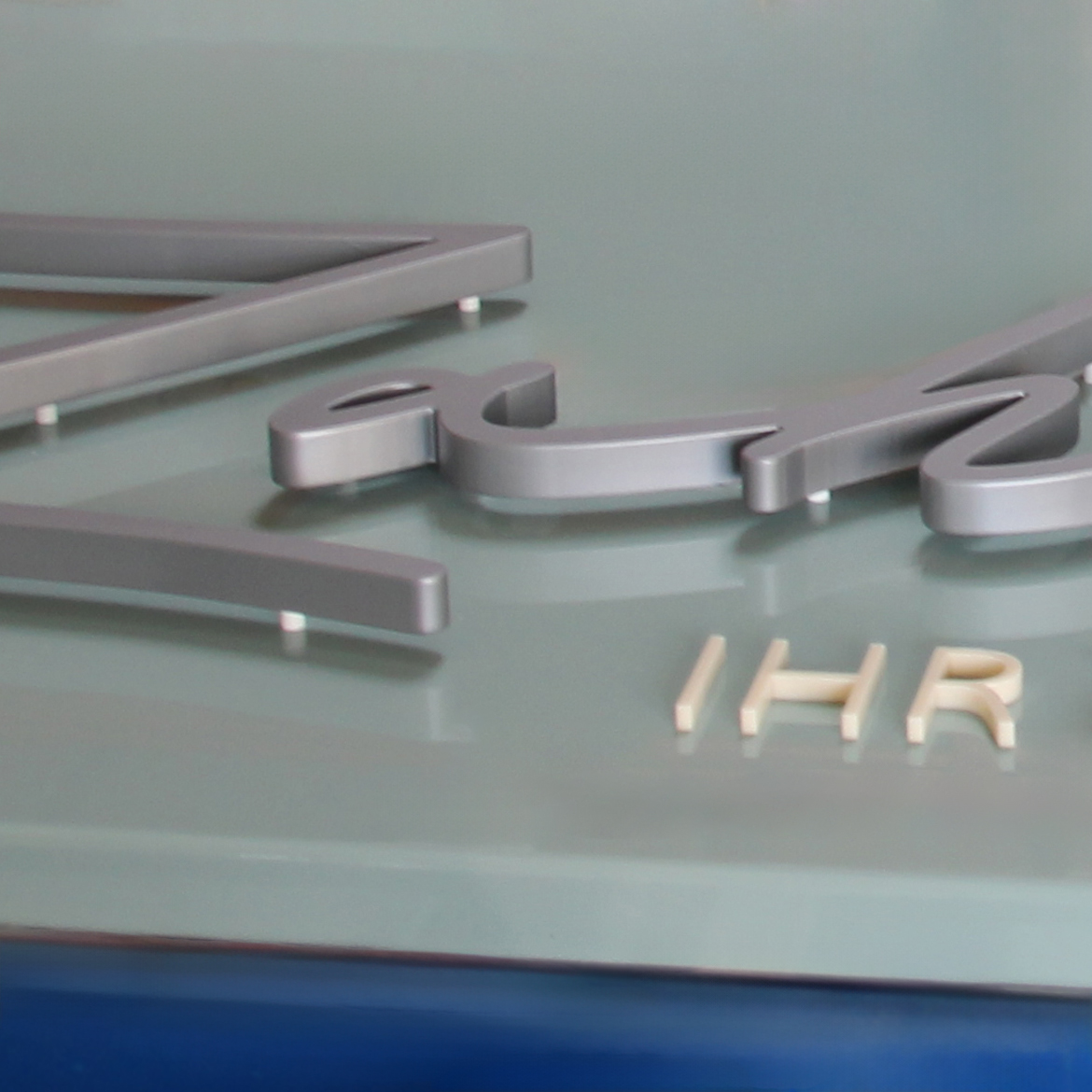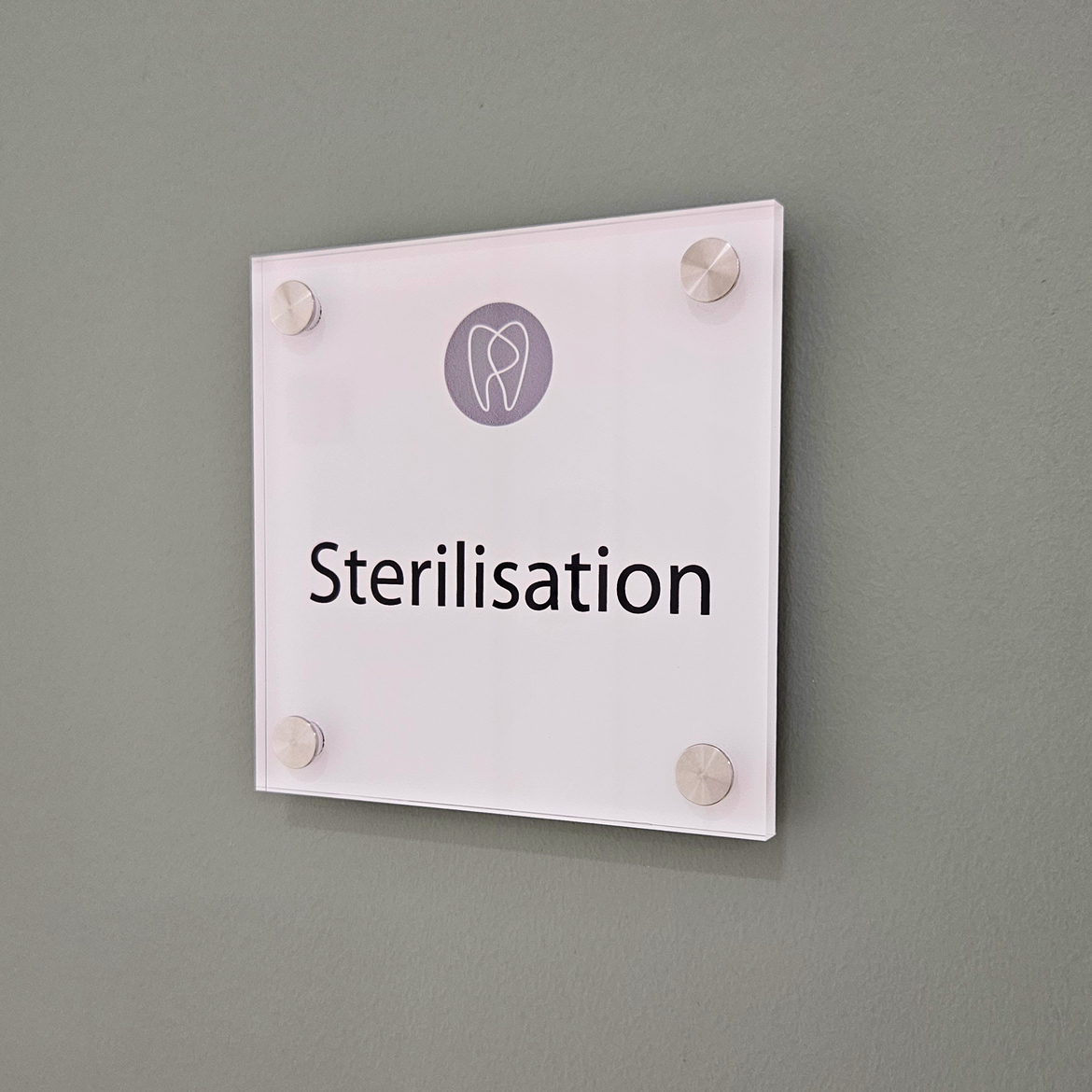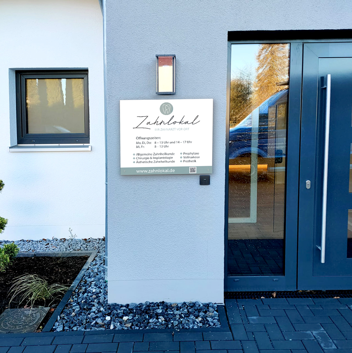 An der Außenfassade der Praxis ist ein elegantes Acrylglas-Schild mit wichtiger Information für die Patienten. Das Schild ist 70×60 cm groß und aus einem robusten Material hergestellt, das allen Witterungsbedingungen standhält. Die kleinen Acrylglas-Schilder an jedem Praxisraum sorgen für eine klare und moderne Raumaufteilung. Das Design ist schlicht und elegant, abgestimmt auf das Konzept der Praxis (CI).