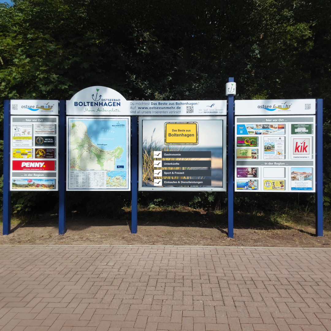 Von der Planung bis zur Montage bieten wir ein Komplettsystem für Wegweisungen und Infopoints. Unsere langjährige Erfahrung garantiert durchdachte Lösungen, die sowohl funktional als auch ästhetisch ansprechend sind. Unser Vertrieb vermarktet das System, das in unserer Werkstatt erstellt wird. Wir bieten regelmäßige Reinigung und Wartung sowie kostenfreie Reparatur, Versetzung und Ersatz bei Baumaßnahmen oder Totalzerstörung.