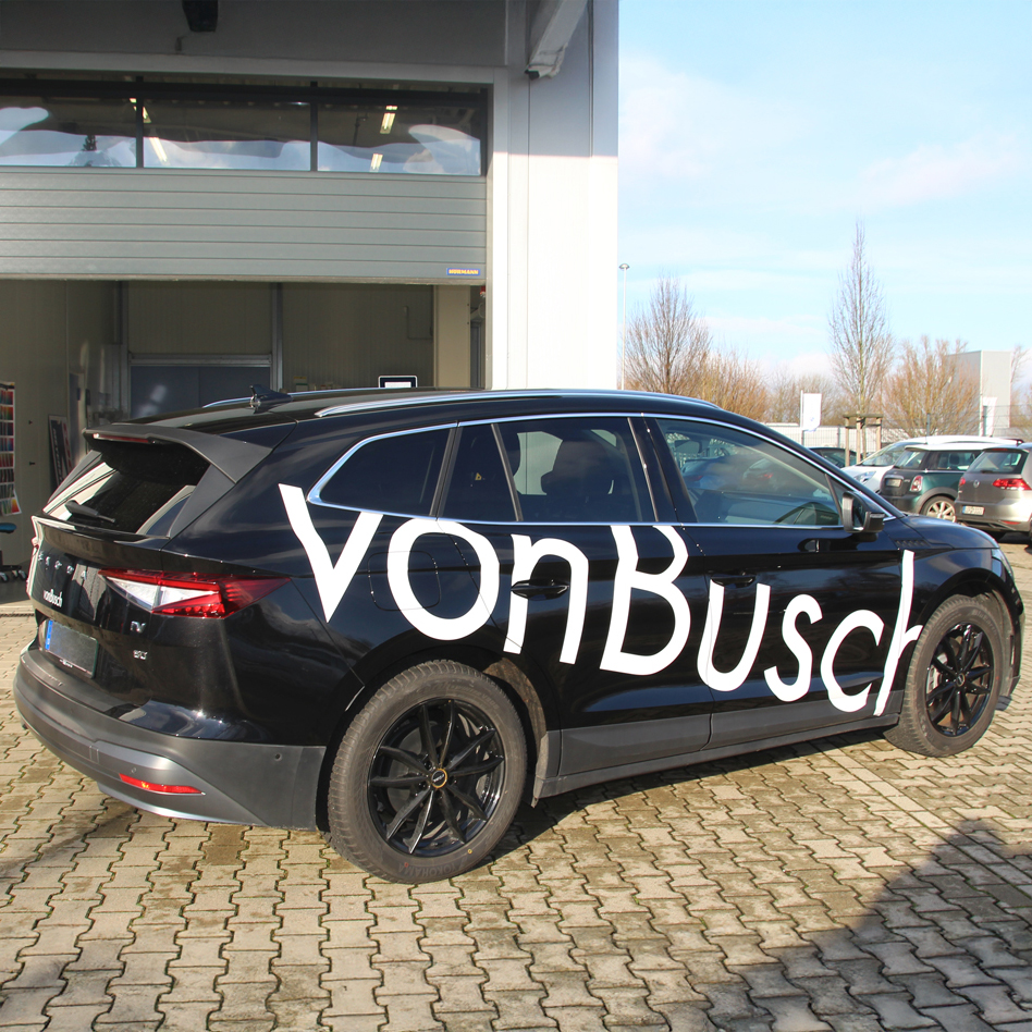 Zusätzlich vervollständigen Fahrzeugbeschriftungen das Gesamtpaket. Diese mobilen Werbeflächen bringen die Marke direkt auf die Straße und sorgen für langfristige Aufmerksamkeit.
