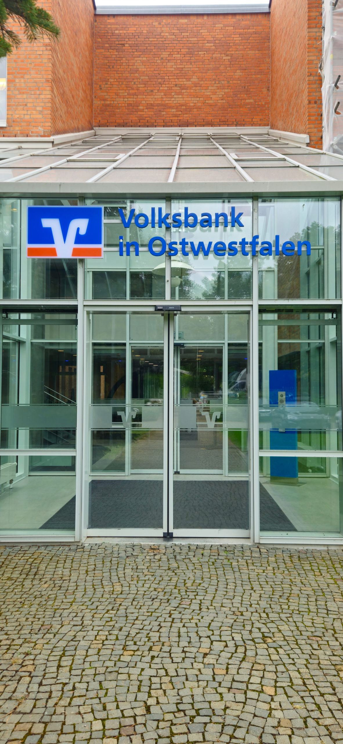 Moderne Werbetechnik für VerbundVolksbank OWL in Bad Driburg