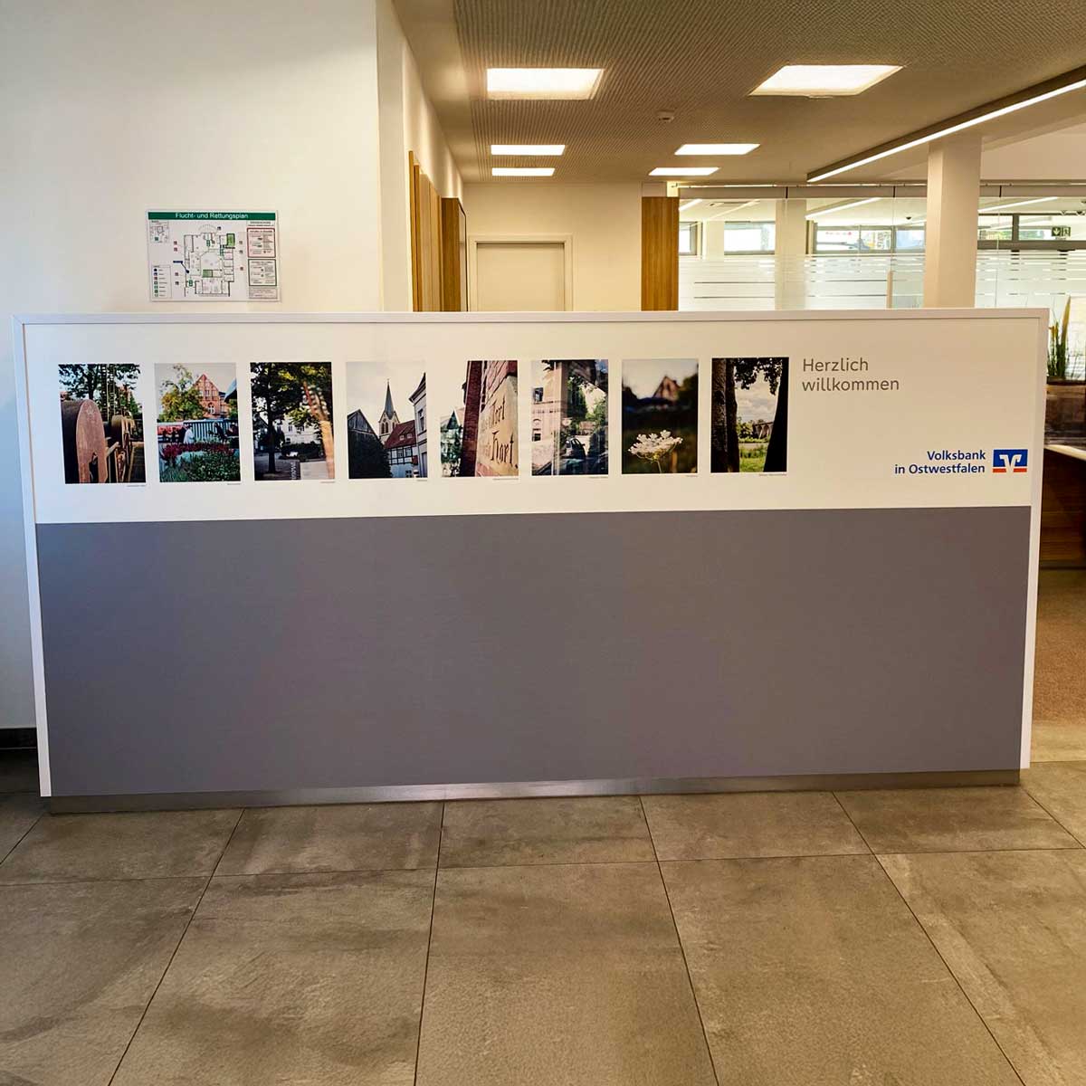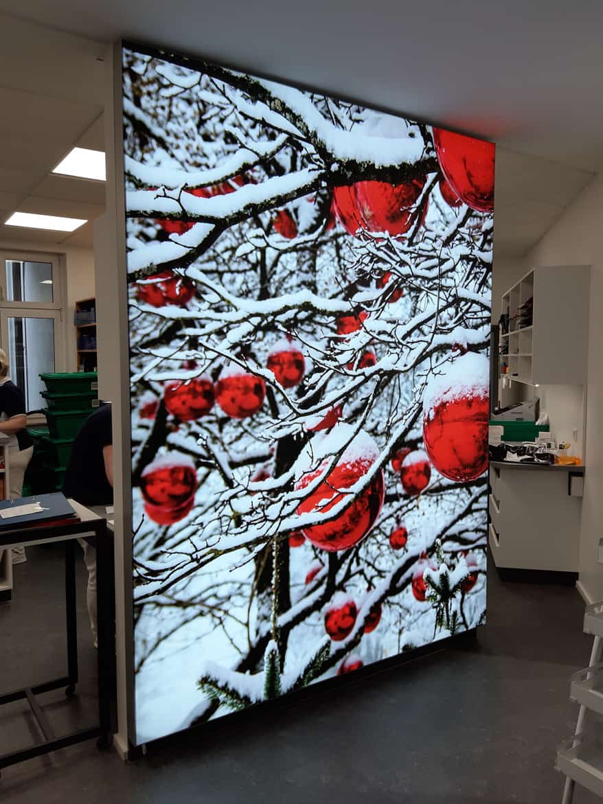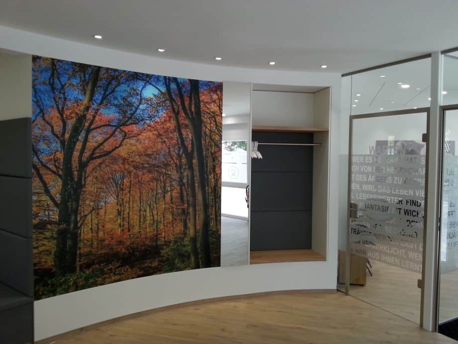 Wände und größere Fensterscheiben führen oft zu wahrnehmbaren reflektierenden Schallwellen, die als störender Nachhall die Raumakustik verschlechtern. Maßgeschneiderte Akustikspanntuchrahmen mit individuellen Bildmotiven absorbieren Schall und verbessern die Akustik hörbar.